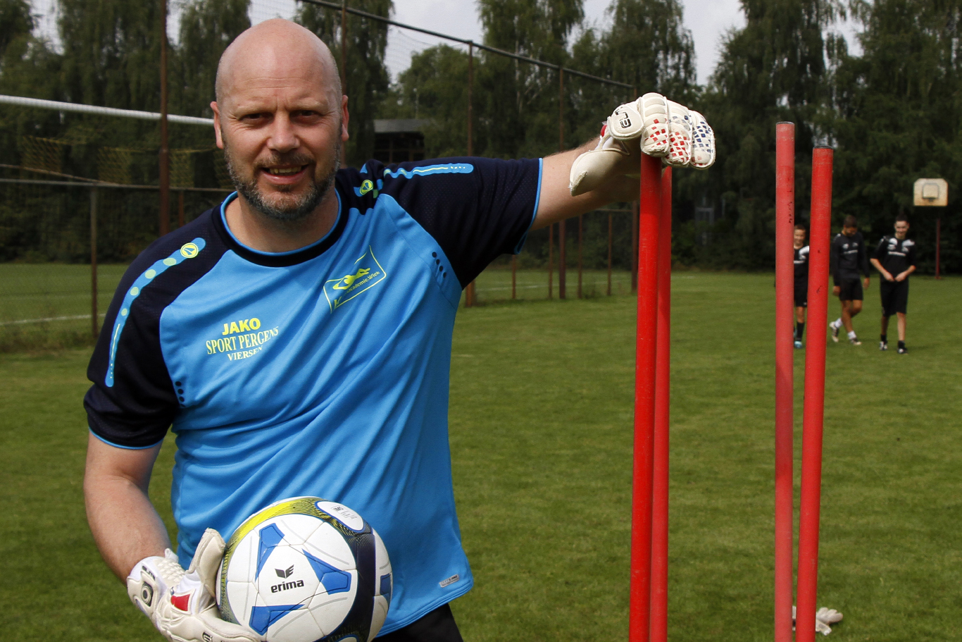 Middenin een geestdriftig gesprek over keepen wordt het muisstil op de trap van het clubhuis van VV Belfeldia. Chris Wiek krijgt kippenvel, ‘Gänsehaut’. De naam Robert Enke is gevallen. Dochter Kimi staakt ook abrupt haar deelname aan de conversatie. Het groene Borussia Mönchengladbach tenue, de vijftienjarige keepster draagt de outfit fier, zegt veel over haar toekomst en de achtergrond van haar vader. Chris werd in 1976 geboren in Viersen. Een stad in deelstaat Noordrijn-Westfalen, met nu ruim 75.000 inwoners, vlakbij Mönchengladbach. Vanaf het moment dat hij een bal kan trappen, gebruikt onze Oosterbuur z’n handen: “Toen ik als kleine jongen ging voetballen, ben ik meteen gaan keepen. Ik heb nooit iets anders willen doen. Keepers waren fantastisch. Altijd van die opvallende types. Dat sprak mij aan.”