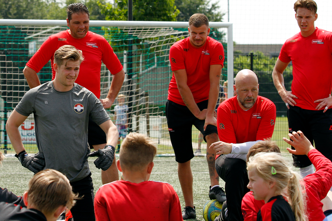 Het praktijkgedeelte van de Keeperzclinic werd op het veld afgesloten met een demonstratietraining. Daarin kwam de dynamiek van het keepen en het belang van steeds sneller proberen te handelen op meerdere manieren naar voren. Natuurlijk konden de doelmannen die dromen van mooie carrières aan Mattijs Branderhorst vragen wat hij er voor heeft gedaan en laten om door te breken in het betaalde voetbal. De allerkleinsten stelden met grote ogen van bewondering de meest logische vragen over voeding en bedtijden.