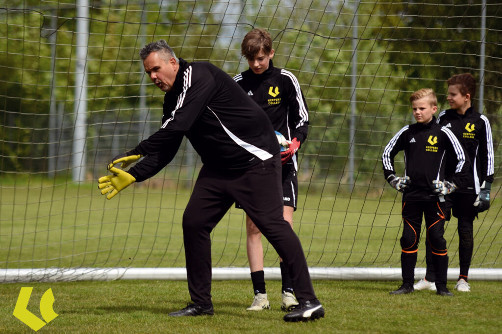 DANNY WINTJENS LEGT DE POSITIE IN HET DOEL UIT. (FOTO HET KEEPERSCOLLEGE)