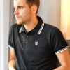 Het klassieke poloshirt is voorzien van een sluiting met drie knopen, gestreepte kraag en manchetten en een KlasseKeepers-embleem geborduurd op de borst. De polo is afgewerkt met een lederen KlasseKeepers-label aan de rechtermouw.